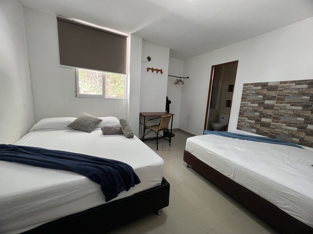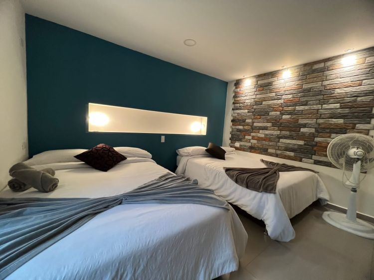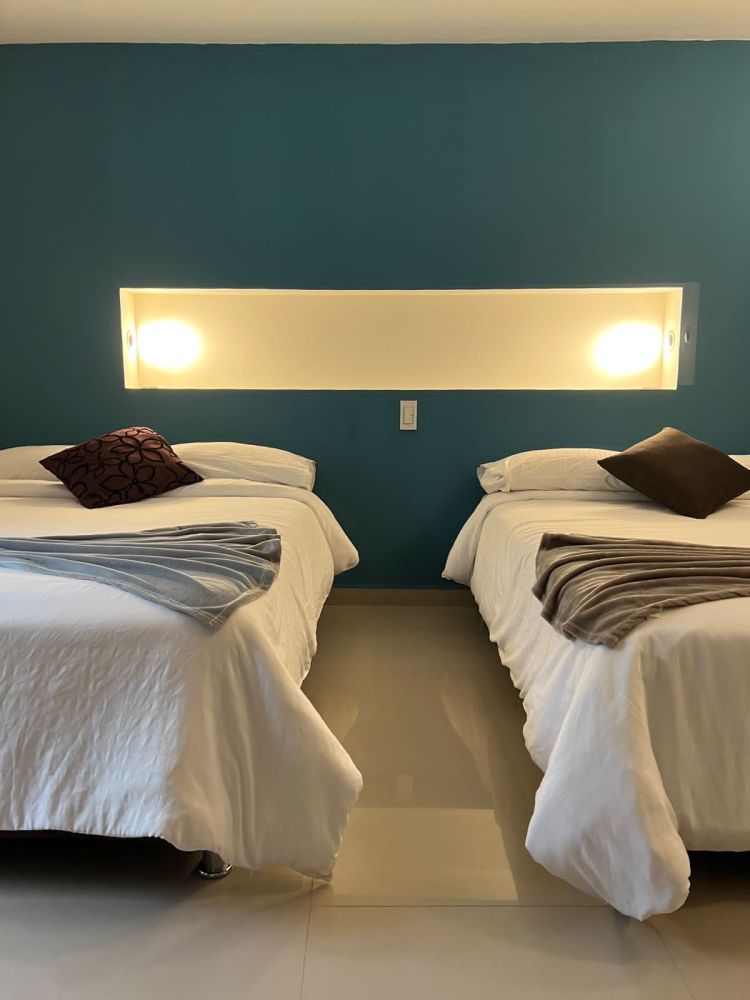 Esta habitación está diseñada con el fin de alojar visitantes que viajan en grupos de amigos o familia y que desean estar juntos en un solo espacio, sus dos camas dobles brindan comodidad a maximo 4 personas, su balcón tiene una vista hermosa de las montañas.